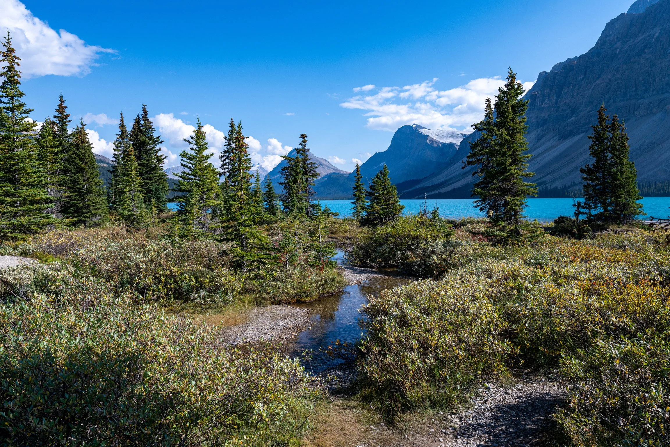 Am Peyto Lake angekommen stehen wir auf einer Aussichtsplattform und der See der sich im Tal erstreckt sieht aus wie schlecht gephotoshopt. Das Wasser ist tief türkis, gespeist auf einem Gletscher sorgen die Mineralien im Wasser für dieses Reflexionsverhalten, verrät ein Schild am Rand. Das Bild ist völlig surreal. Weiter zum Bow Glacier und am Hector Lake vorbei - es ist phänomenal hier einfach mit 80 Sachen die Straße runter zu dümpeln und überall mal rauszufahren, ein paar Meter zu wandern um wieder überrascht zu werden, dass es noch schöner werden kann.