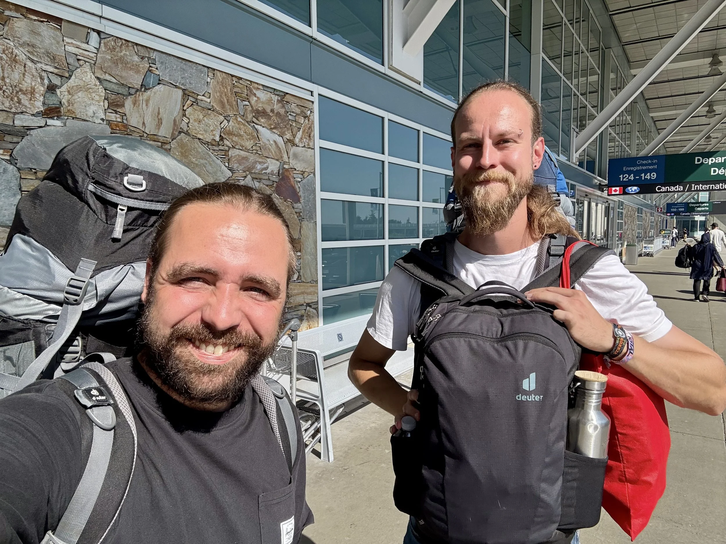 Wenig später sitzen im Shuttle zum Flughafen. Weil wir noch zwei Bier übrig hatten müssen die noch weg, Flüssigkeiten im Handgepäck gehen schließlich nur bis 100ml. Ein letztes Parallel49 mit Blick über den Flughafen, dann ist die Geschichte auserzählt. 3 Wochen Kanada, jeder Tag einfach Mega. Tolles Wohnmobil, bestes Wetter, so viele Highlights die wir uns angeschaut und erwandert haben. Wahnsinn. Und vor allem - ne wirklich entspannte Reisebegleitung. Mit Mario unterwegs zu sein ist relaxed, das funktioniert. Auch kein so großes Risiko nach drei Interrailtouren und Japan vor 2 Jahren. Nicht zu vergessen - 10 Jahre WG. Aber an der Stelle trotzdem ein ganz dickes Dankeschön für diese Mega gute Zeit!