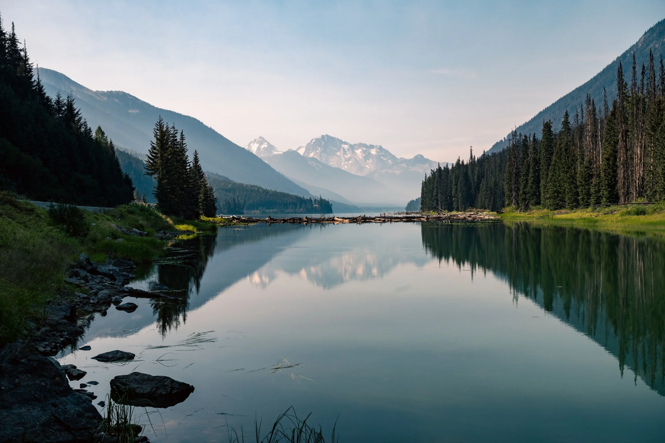 Zugegebenermaßen gibt es hier aber auch nicht so viele Straßen und so richtig gut verfahren kann man sich ja auch nicht, wenn man kein klares Ziel hat. Heute ist es richtig warm, das Thermometer zeigt 32° und die Landschaft erinnert in Teilen eher an New Mexico als an Kanada. Als die Sonne schon hinter den Berggipfeln verschwunden ist finden wir an einem kleinen See einen netten Platz für unseren bereiften Palast. Wir treffen einen Typen, von dem wir glauben, dass er Mike heißt - er und zwei Österreicher mit entsprechendem Akzent, mit denen wir wenig später am See lecker Bierchen trinken, geben uns den Tipp zum Pyramid Campingplatz zu fahren - dagegen wäre dieser Platz, den ich bisher als äußerst idyllisch empfand, eher wie der Seitenstreifen der A1.